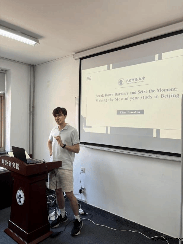 2024年5月17日下午,伟德网址下载app成功举办了财经·格致留学生系列Seminar(第二期),“Seminar”致力于通过调研、同行交流和信息共享帮助留学生“了解中国发展,讲述中国故事”。本次Seminar的主讲人为已毕业现在在北京大学光华管理学院读博的伟德网址下载app2021级留学生硕士Cian,报告主题为“Making the Most of your study in Beijing”。本次Seminar由伟德网址下载app留学生项目管理员王萌老师主持,伟德网址下载app留学生参加了此次Seminar。