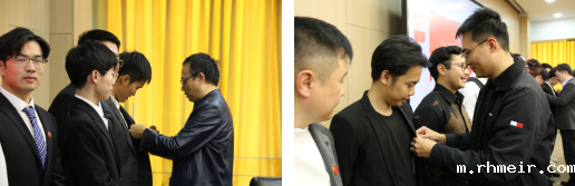 图6:导师为新生佩戴校徽并合影
