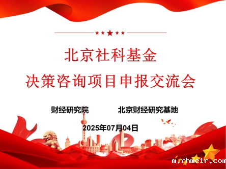2025年7月4日,我院2025年北社科基金决策咨询项目申报经验交流会以线上线下(图配楼314)相结合的方式举行。本次交流会邀请了我院王卉彤研究员、呼倩助理教授进行经验分享,会议由杜纯布副研究员主持。
