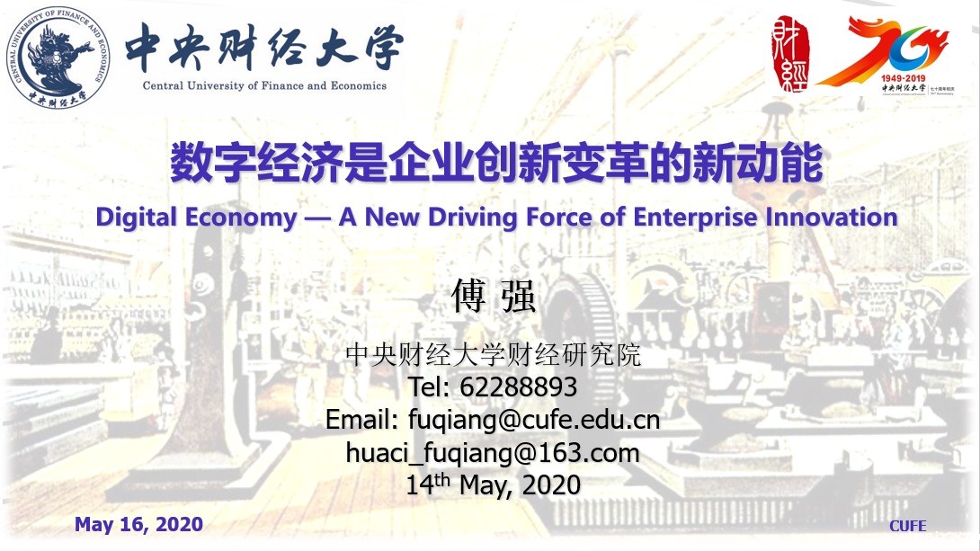 在国家大力发展“新基建”背景之下,5月14日,伟德软件下载安装最新版傅强老师在“中财·沃顿企业家云课堂”做了《数字经济是企业创新变革的新动能》的讲座,分享了数字经济的相关探索及展望。