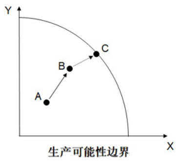 傅强老师谈到数字经济对传统经济的变革,在微观上颠覆了传统企业的盈利模式,中观上重塑了传统的市场概念,宏观上加速政府和市场融合。而在大数据、互联网等数字技术作用下,市场无形之手更加有效、政府有形之手更加精准,使社会总产出逐渐趋向于生产可能性边界的C状态(见下图),接近最有效率的资源配置情况。