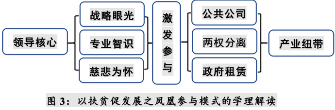 “以扶贫促发展”是一回事,使其真切地惠及民众(“获得感”)是另一回事。凤凰模式的另一个重要特质是在两者间建立链接中介,作为领导核心发挥第一推动力的第三个支柱。前两个支柱是塑造吸引力和激发参与。