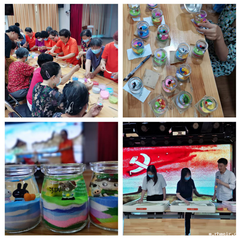 活动开始前,三位同学积极进行场地布置、人员签到等工作,并与大有庄社区书记进行工作对接,对本次志愿活动进行详细规划。活动开始后,熊老师首先对沙画艺术进行了简单介绍,然后为我们现场制作了中国的国宝熊猫沙画。随后,熊老师现场教学沙画瓶的制作,广大党员同志全神贯注,认真听讲,不放过每一个细节,争取制作出最优质的的沙画瓶为祖国献礼。