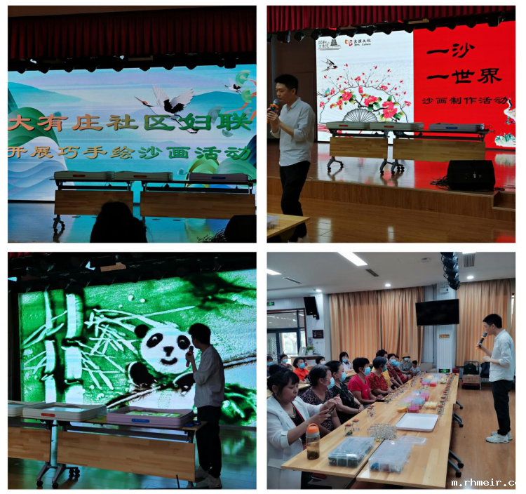 2021年是中国共产党成立100周年,为迎接中国共产党百年华诞,感悟中华民族传统文化的魅力,弘扬中华优秀文化,丰富辖区广大群众的精神文化生活,6月30日,作为红色“1+1”和乡村振兴服务站活动之一,伟德网址下载app赵艳婷、祝茜茜、宋宇同学赴海淀区大有庄社区参加沙画志愿活动。本次活动邀请到清华大学美术学院著名沙画艺术家熊林老师担任指导教师,熊老师是丝路青年沙画国际大赛专业评委、香港卫视“一沙一世界”栏目主讲嘉宾,曾多次受邀出国访问,在建党百年华诞,大有庄社区用沙画来表现对党、对祖国、对人民、对我们美好生活的热爱。