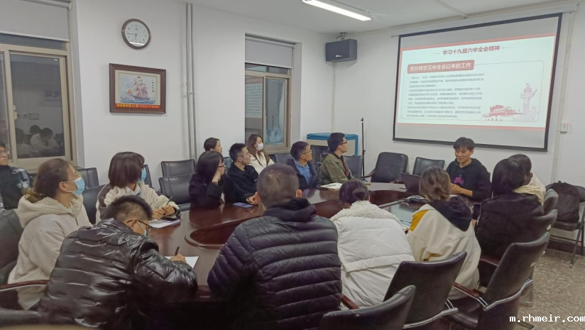 会议第一项内容是支部书记穆希腾同志对全会情况进行简要介绍。中国共产党第十九届中央委员会第六次全体会议,于2021年11月8日至11日在北京举行。全会最重要的成果是审议通过了《中共中央关于党的百年奋斗重大成就和历史经验的决议》,全会审议通过的《决议》通篇融汇了百年来中国共产党践行为中国人民谋幸福、为中华民族谋复兴的初心使命所进行的奋斗、牺牲和创造,深刻揭示了“过去我们为什么能够成功、未来我们怎样才能继续成功”。