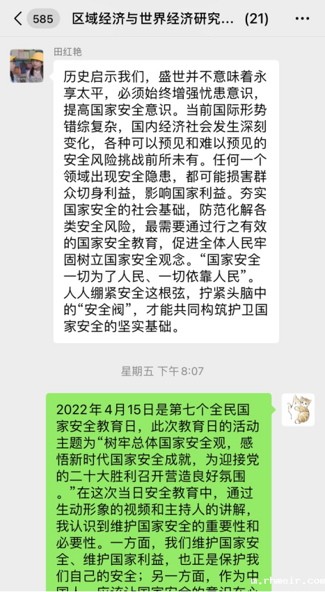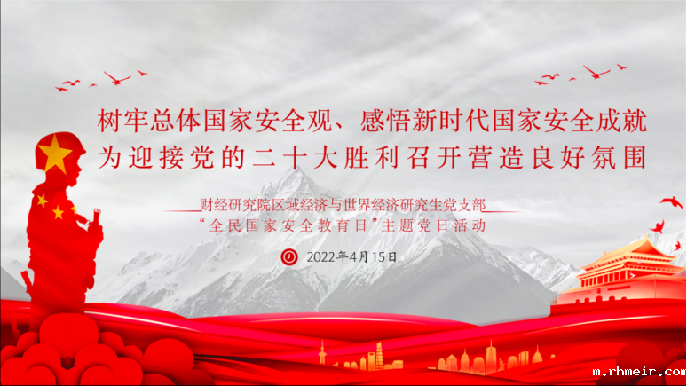 2022年4月15日,伟德网址下载app区域经济与世界经济研究生党支部举行“全民国家安全教育日“主题党日活动。本次活动围绕“树牢总体国家安全观,感悟新时代国家安全成就,为迎接党的二十大胜利召开营造良好氛围”主题开展,会议由支部组织委员薛婧轩同志主持。