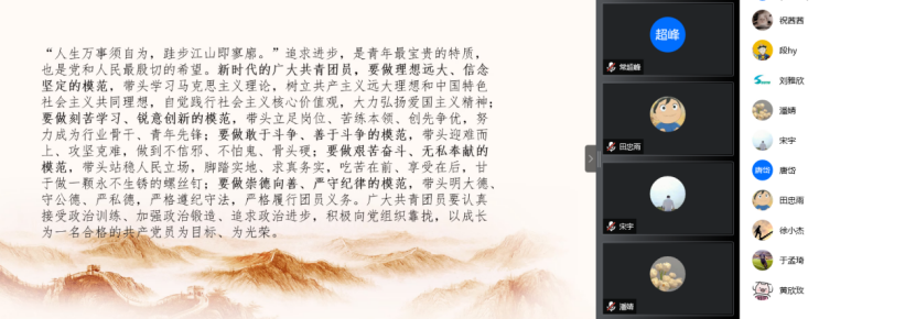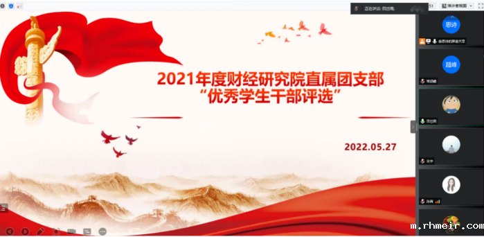 2022年5月27日下午,伟德网址下载app直属团支部通过腾讯会议召开2021年度“优秀学生干部”评选暨2022年上半年团员教育评议大会。本次大会由团支部副书记秦思诗主持,我院全体团员和多数党员参加了本次大会。