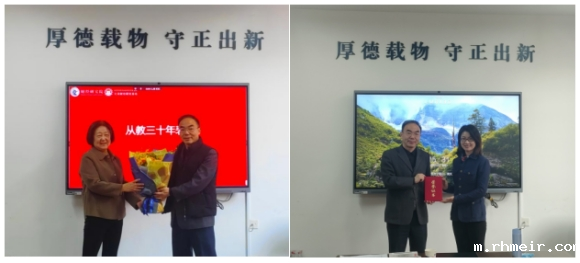 赵国钦宣读了从教三十年教龄的表彰词。2024年我院从教三十年的教师有王雍君教授、李军教授。曹明星向在教育战线上辛勤耕耘三十年的两位教师致以崇高的敬意并献花。曹明星对优秀留学生论文指导教师赵浚竹副研究员进行了表彰并颁发证书。