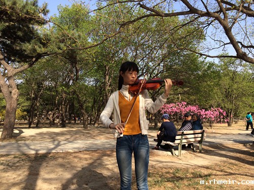 走进植物园,空气清新,和风送暖,阵阵花香令人心醉,师生一行在植物园中漫步游览,欢声笑语不绝于耳。随后,在草坪上展开的师生联谊活动将此次春游推向了高潮,贾宇清同学首先独奏小提琴曲“卡农”,此起彼伏、连绵不断的音乐声使得整个春色都生动起来;其后,雷丹老师演奏的小提琴曲“四季调”节奏欢快明朗,引得许多游客驻足欣赏;钟旭茂同学演唱的藏族歌曲“卓玛”让大家不断拍手叫好,随着联谊活动的进行,春天的植物园,记录下了我们的青春和欢笑,满园的春色,见证了我们浓厚的师生情感。
