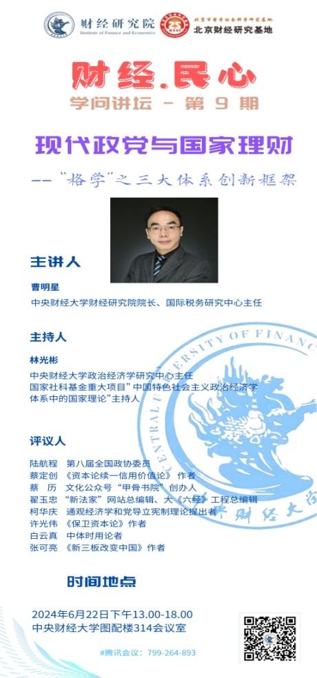 讲座主题:现代政党与国家理财——“格学”之三大体系创新框架