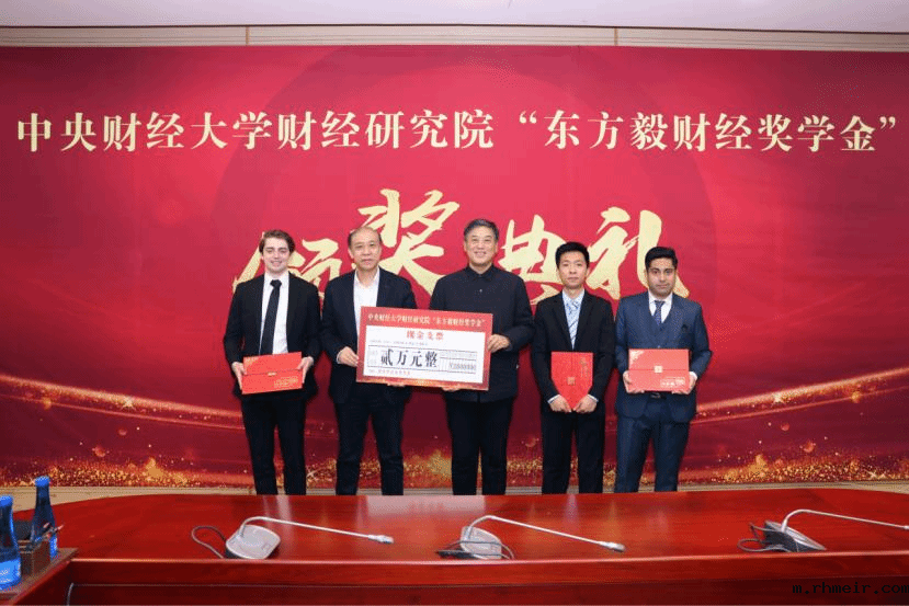 “东方毅财经奖学金〞获奖学生国内硕士生代表孙茜、国际博士留学生代表候德瑞发表获奖感言,表达对过毅董事长及北京新时代征程文化发展集团有限公司捐赠义举的感谢,并感恩学校、学院领导、老师们的辛勤培养与帮助,同时感激在时代浪潮中勇毅前行的同学们。