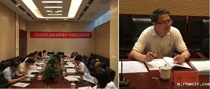 7月6日下午,我院傅强副院长应邀参加中央网信办主持召开的《信息安全技术·金融信息保护规范》标准制定专家评审会。参加此次会议的有:中央网信办信管局副局长孙新,中国电子技术标准化研究院副院长、信安标委WG7工作组组长杨建军,中电长城网际标准化总工、信安标委WG7工作组副组长闽京华,中国银行业监督管理委员会科技监管部副主任李丹,中国银行软件中心副总经理熊志正,中国人民大学金融信息中心主任杨健教授以及中国人民大学信息资源管理学院院长赵国俊教授等。