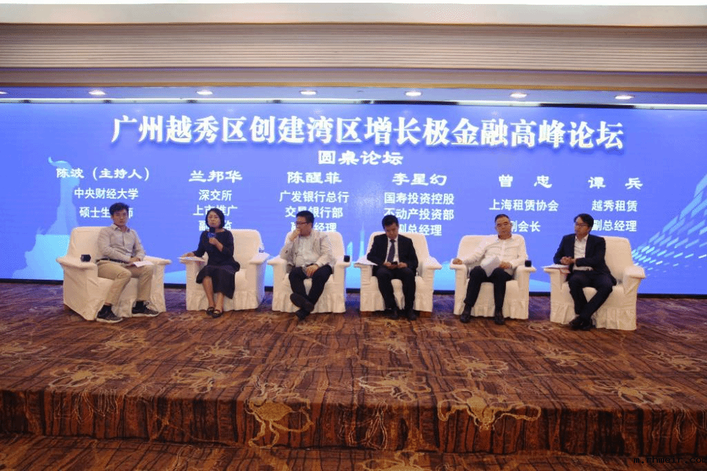陈波博士受邀担任论坛圆桌论坛的主持人,圆桌论坛的嘉宾深交所上市推广副总监兰邦华、广发银行交易银行部副总经理陈醒菲、上海市租赁行业协会副会长曾忠、广州越秀租赁副总经理谭兵等着重在智慧城市、总部经济和文化金融等领域的创新模式和思路进行了分析。