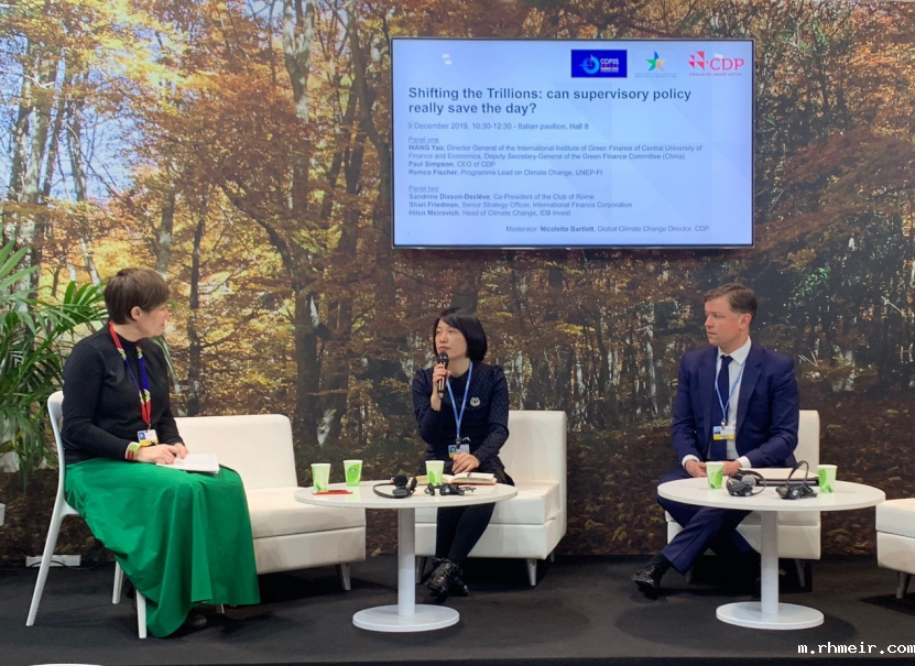 12月2-13日,第25届联合国气候变化大会在西班牙首都马德里召开。当地时间12月9日,伟德网址下载app王遥研究院应碳信息披露组织(CDP)邀请,于意大利角参加名为“Shifting the Trillions:can supervisory policy really save the day”的专家研讨会。