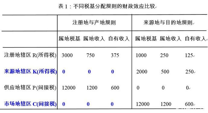 由表1可知:在来源地规则下,注册地辖区(发达地区)的利润与所得税的很大一部分将被归属给来源地辖区(欠发达地区);目的地规则下,供应地辖区(发达地区)的销售与间接税的很大一部分将被归属给市场地辖区(欠发达地区)。这项常被低看和漏看的“似小实大”之举,足以全面重塑政府间财政体制的版图,从而系统且持续地改善财政体制的机能与运作。