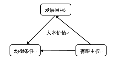 4个核心概念间的逻辑联系奠定了人本经济学的理论框架:(1)人类的经济活动应以“人本价值”为依归,(2)由人本价值界定发展目标—增长、平等和稳定,(3)每个发展目标寻求逼近人本价值的均衡条件,(4)每组均衡条件都基于“有限消费者主权”的预设。