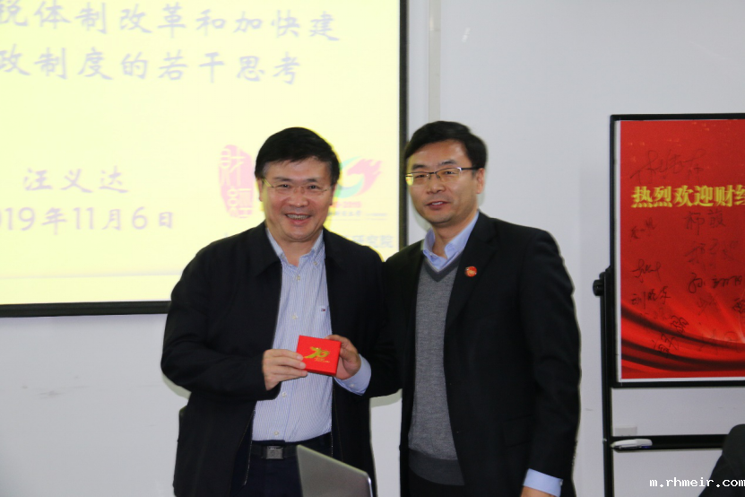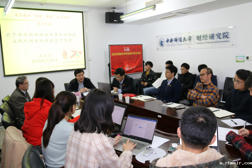 2019年11月6日晚上,伟德网址下载app龙马奋进“财经·格致”名家论坛第十四讲在图配楼314会议室举行,本次论坛的主讲人为财政部研究室一级巡视员汪义达先生,讲座主题为“关于深化财税体制改革和加快建立现代财政制度的若干思考“。论坛由伟德网址下载app林光彬院长主持,伟德网址下载app三十余名师生参加了此次论坛。