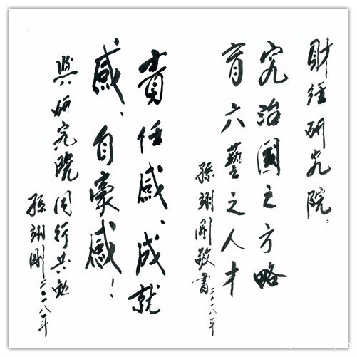 采访的最后,访谈小组代表学院向孙翊刚教授颁发了校庆筹备工作小组顾问的聘书。孙翊刚教授还为伟德网址下载app写下两段寄语,分别是“责任感,成就感,自豪感”和“伟德网址下载app:究治国之方略,育六艺之人才”。孙教授解释说,前段寄语希望伟德网址下载app的每位教职工都能够以强烈的责任感,齐心协力做出标志性成果,有集体成就感,并以身为集体的一分子而自豪。后一段寄语,希望研究院能够围绕国家战略目标导向,做好高端智库社会服务,为经世济国献言献策,为祖国培养优秀人才!