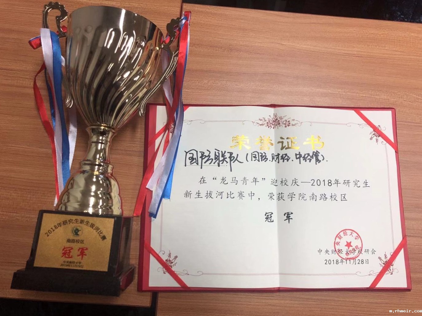 2018年11月28日,伟德网址下载app2018级研究生矫立志、蒋培栋、王建业与国防经济研究院、中国经济与管理学院的同学组队参加了校研究生会体育部主办的2018年研究生新生拔河比赛,三位同学在比赛中团结合作、奋力拼搏,最终取得了拔河比赛冠军的优异成绩。