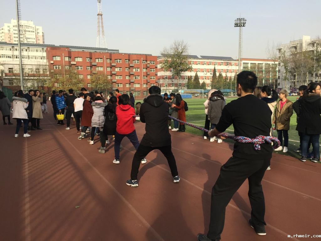 中午一点,在学院南路校区参加比赛的七支队伍在操场主席台前集合,抽签决定对决次序后,参赛队员开始在操场上热身并商议参赛策略。赛前我院同学对拔河的发力技巧、队员站位次序与其他队员进行了热烈讨论。到正式上场时队员们斗志昂扬,紧攥绳子的手暴起青筋,咬紧牙关拼尽浑身力气。此情此景下周围的同学也深受感染,为场上选手大声呐喊鼓劲。