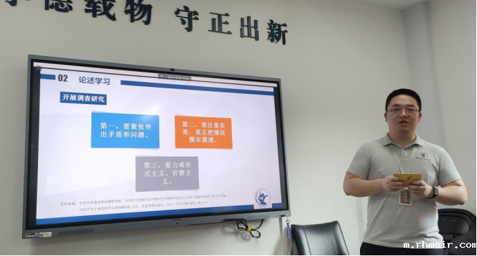 宣讲中,龙光泽同志首先以一个小问题为引,展开了关于“调查研究”这一主题的宣讲。他深入阐述了调查研究作为我们党宝贵财富的重要性,并分析了毛泽东同志在1930年5月发表的《反对本本主义》一文,得出了毛泽东同志调查研究思想的三个维度,即:坚持实事求是的思想作风,践行群众路线的领导作风以及树立求真务实的工作作风。龙光泽同志还分析了毛泽东同志《长岗乡调查》一文,通过播放当时的歌曲《苏区干部好作风》(苏区干部好作风,自带干粮去办公,日着草鞋干革命,夜打灯笼访贫农)体现了党不畏艰苦、深入群众中开展调查研究,与人民群众血肉联系的鲜活史实。